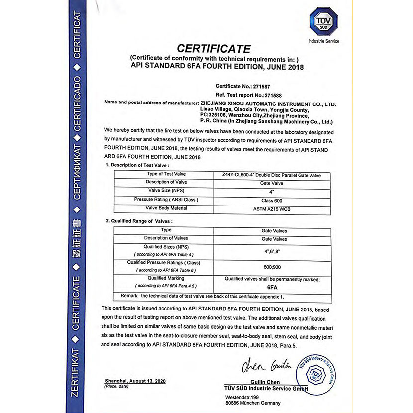 閘閥防火證書 2